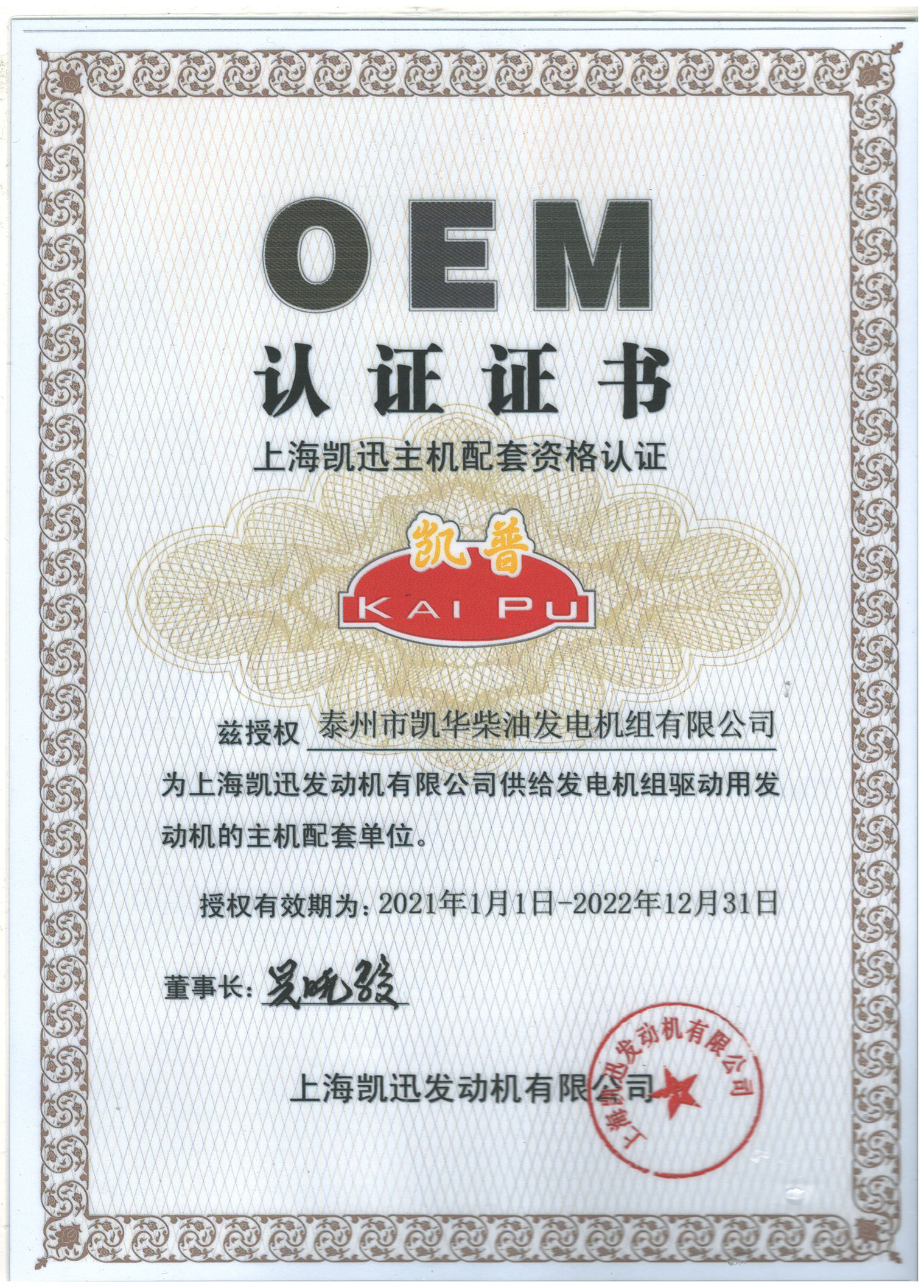 泰州市凱華柴油發電機組有限公司創建于2003年,是一家集柴油發電機組燃氣發電機組的研發、生產、銷售為一體的高新技術民營企業,公司座落于“漢唐古郡,淮海名區”,具有“鳳凰城”美稱的祥泰之州——江蘇省泰州市,地處中國經濟最發達的長三角經濟圈,水陸空立體交通,地理位置十分優越。公司目前注冊資本金11800萬元人民幣,生產基地占地六十畝,現有各類高素質員工一百多名,專業技術人員達46人,其中高級技術人員16人,年銷售額近6億元。